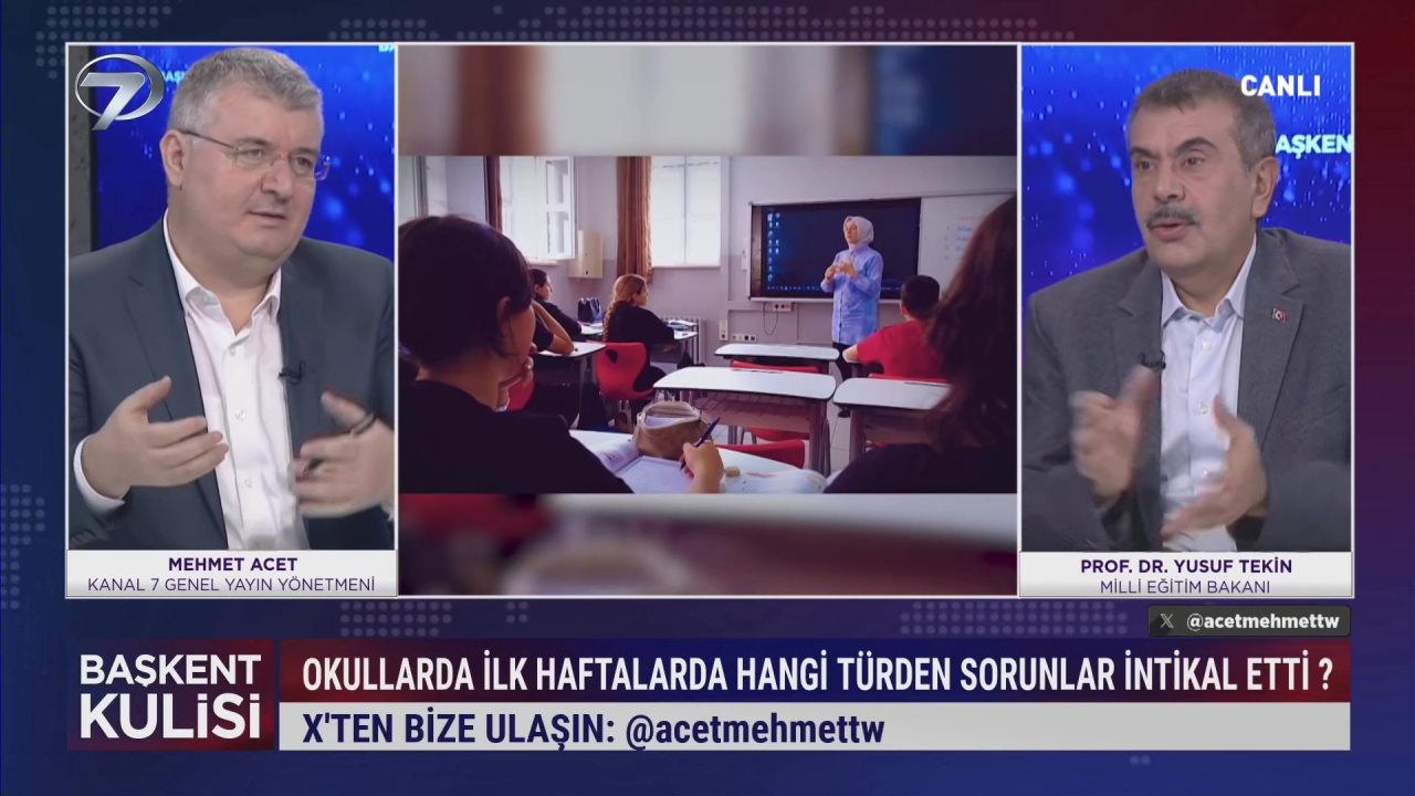 GÜNCEL HABER: Kanal 7 Genel Yayın Yönetmeni Mehmet Acet’in moderatörlüğünde yayımlanan Başkent Kulisi’nin bu haftaki konuğu Türkiye Cumhuriyeti Milli Eğitim Bakanı Yusuf Tekin oldu.