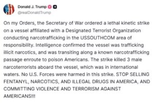 Trump, ABD ordusunun uyuşturucu taşıyan bir tekneye saldırarak 3 narko-teröristi öldürdüğünü açıkladı.