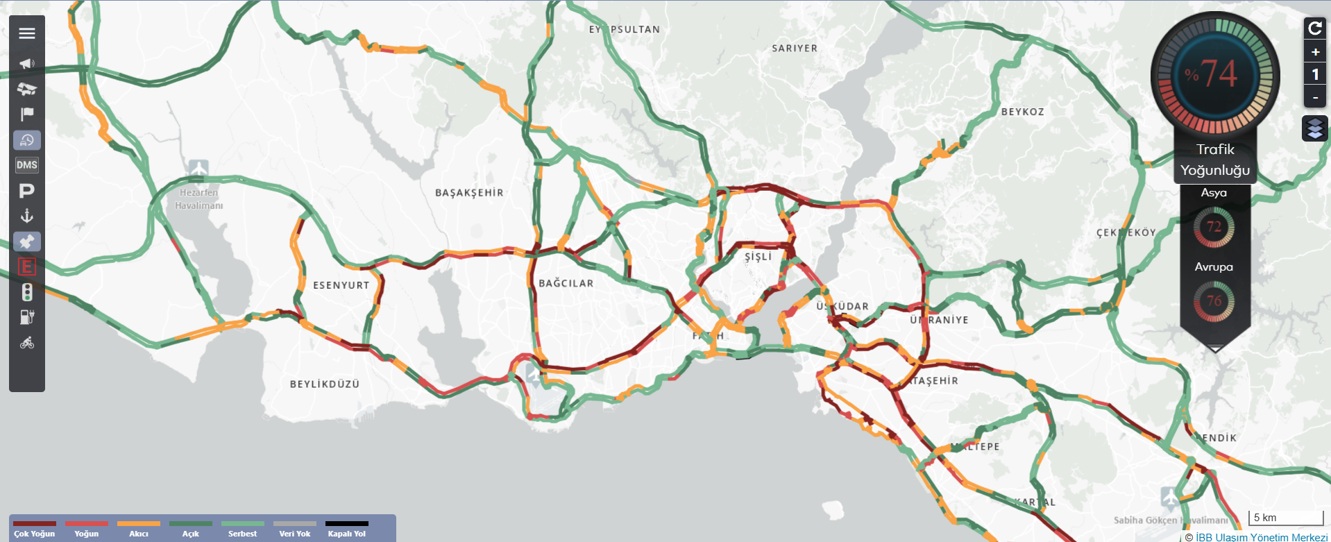 Avrupa Yakası’nda yoğunluk yüzde 76’ya çıkarken, Anadolu Yakası’nda yüzde 72 seviyesinde ölçüldü.